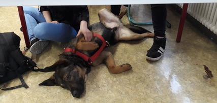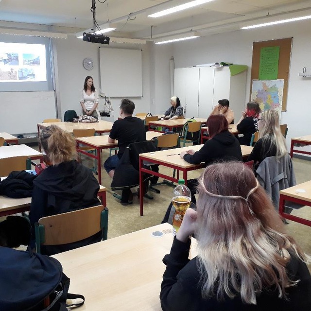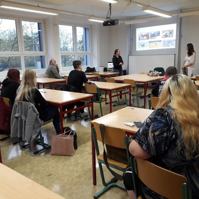 Am 13.4.2018 war es dann soweit. Neben der Tierheimleiterin Frau Dr. Annett Stange und der Ausbilderin des Tierheims besuchten die Klasse die Hunde Wichtel und Pepe. Die Damen wurden pünktlich zu Beginn des Unterrichts von unserem Schulleiter Herrn Dr. Schimmlick begrüßt.  In dem anschließenden Vortrag drehte sich alles um die Aufgaben eines Tierheimes und die anstehenden Arbeiten. Die Schülerinnen und Schüler verfolgten die Präsentation aufmerksam und ließen ihre Erfahrungen und ihr Wissen einfließen. Besonders spannend waren die beiden Hunde, die sich mit Freude von der Klasse streicheln ließen und den Unterricht auflockerten.