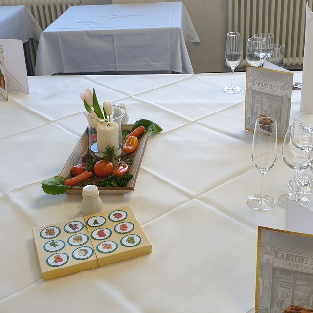 Während die Köche die Gäste kulinarisch mit einem 4-Gang-Menü verwöhnten, mussten die Restaurantfachleute den Gästetisch zum Thema „Hauptsache gesund“ eindecken und einen Aperitif für den Gästeempfang kreieren.